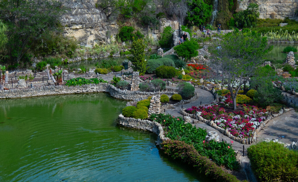 As spring unfolds, the Japanese Garden in San Antonio awakens with vibrant life. Lush blooms in an array of colors burst into bloom, creating a stunning tapestry of nature. Graceful Koi carp glide effortlessly through the clear water. The meticulously crafted stone structures add a timeless charm to the scene, harmonizing beautifully with the surrounding greenery. Capturing these moments, the Fuji X-T2 has proven to be an excellent companion for showcasing this picturesque landscape. This photo demonstrates that even in broad daylight at 1 PM, good colors can be captured despite intense sunshine.