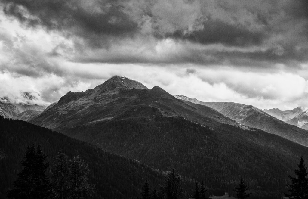 Davos is nestled among the mountains, where rapid weather changes can occur, often bringing dark clouds and heavy rain. The photo was shot with a Sony A7R IV.